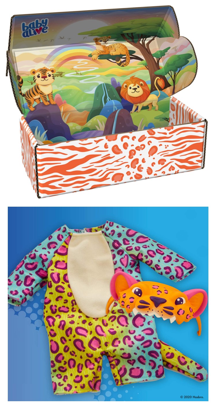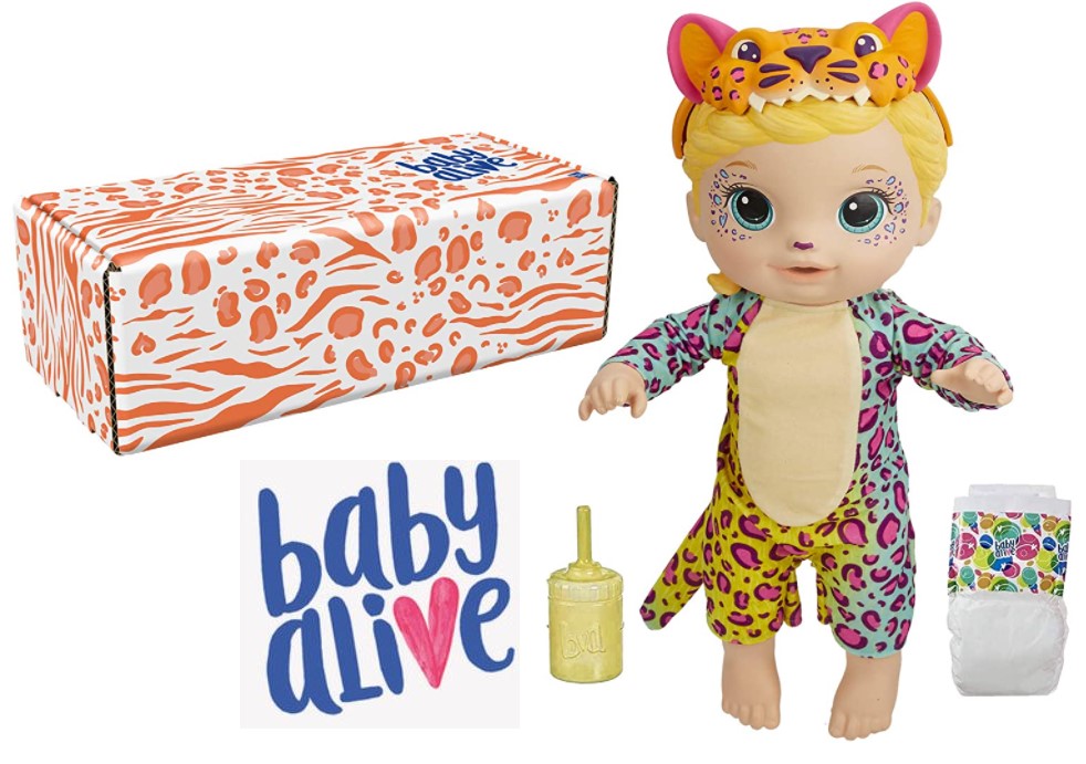 A FILHOTE MAIS LINDA DA FLORESTA: Com acessórios inspirados na selva ela vem com maquiagem de leopardo, roupa e orelhas de leopardo removíveis, biberão e 1 unidade de Fralda. A Baby Alive está sempre pronta para brincar, além de beber, ela também faz xixi.