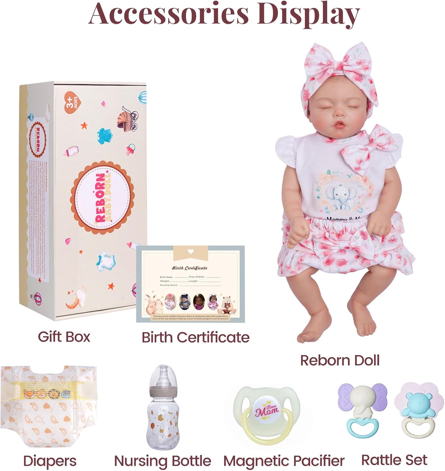 Boneca Bebé Reborn 45cm Corpo inteiro em Silicone Vinilico com acessórios, recém nascido, olhos fechados