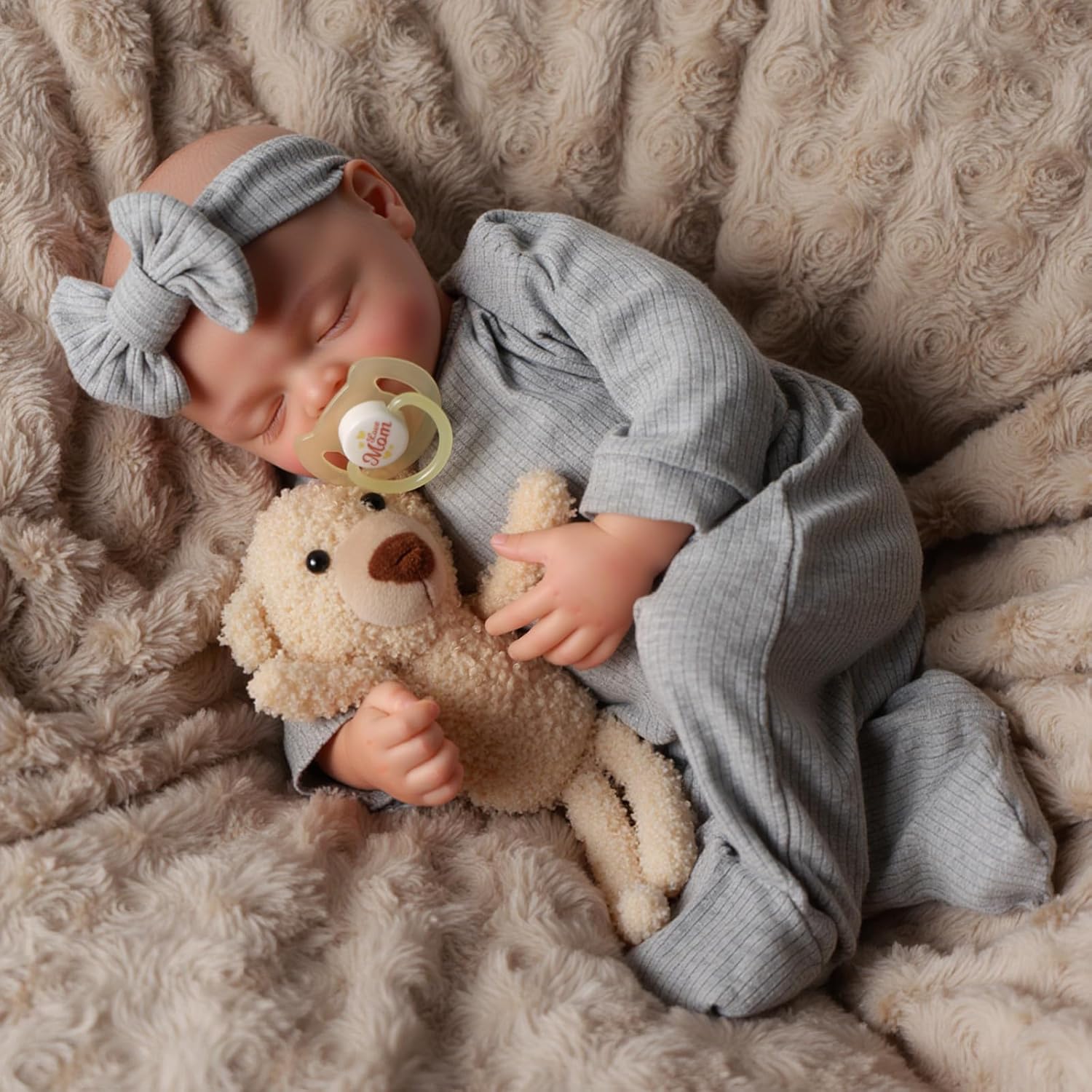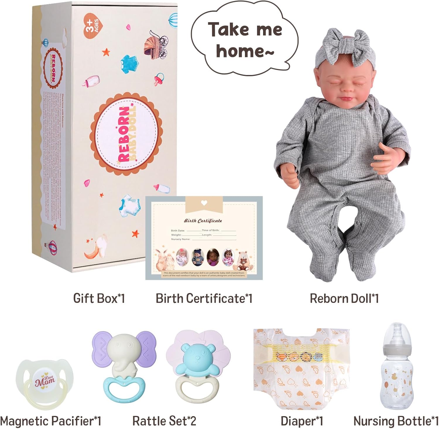 Boneca Bebé Reborn 45cm Corpo inteiro em Silicone Vinilico com acessórios, recém nascido, olhos fechados