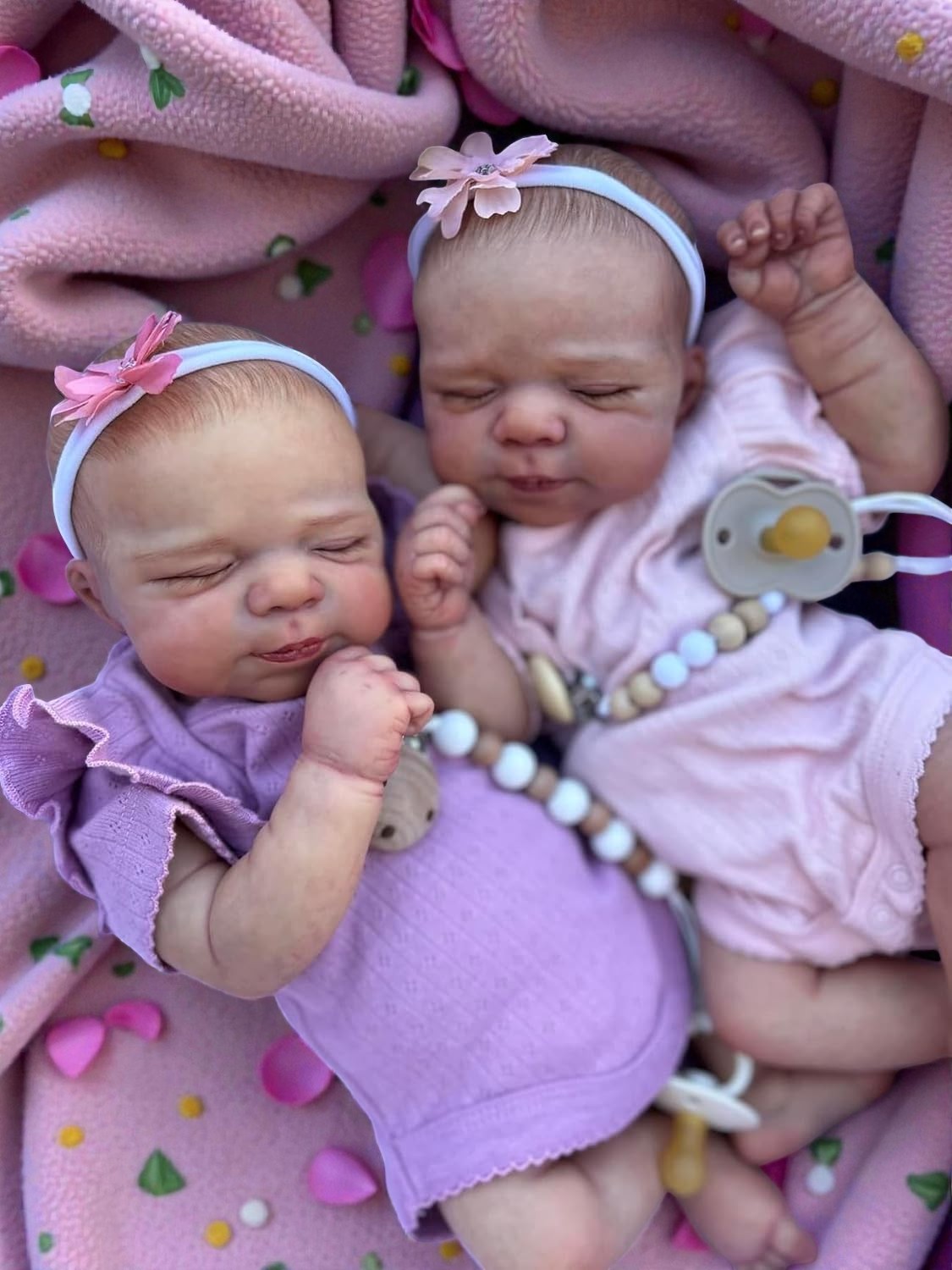 Bonecas Bebé Reborn Gémeas 46cm Silicone Vinílico Corpo Inteiro banhável com acessórios, recém nascidas, olhos fechados