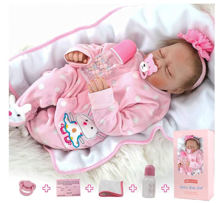 ❤ Linda boneca recém-nascida com detalhes feitos à mão. Os olhos são fechados, e não abrem. ❤ Tamanho realista de um recém-nascido: aproximadamente 55 cm (medição manual) e 1,5kg. Tem um rosto bonito, sobrancelhas pintadas à mão e pestanas coladas à mão. ❤ Material: a cabeça, os braços 3/4 e as pernas são feitas de silicone macio. O corpo é feito de tecido de algodão PP, que é muito macio, mas não pode ser lavado com água. ❤ Cabelo: peruca de seda colada a mão. Efeito mais realista. Use um pente de cabeleireiro de metal para evitar nós. ❤ Acompanha: a roupa da foto, 1 chupeta magnética, 1 biberão, 1 mantinha e 1 certidão de nascimento. ❤ Segurança e qualidade: as bonecas cumprem os requisitos de segurança ASTM F963 e EN71 para crianças a partir de 3 anos.