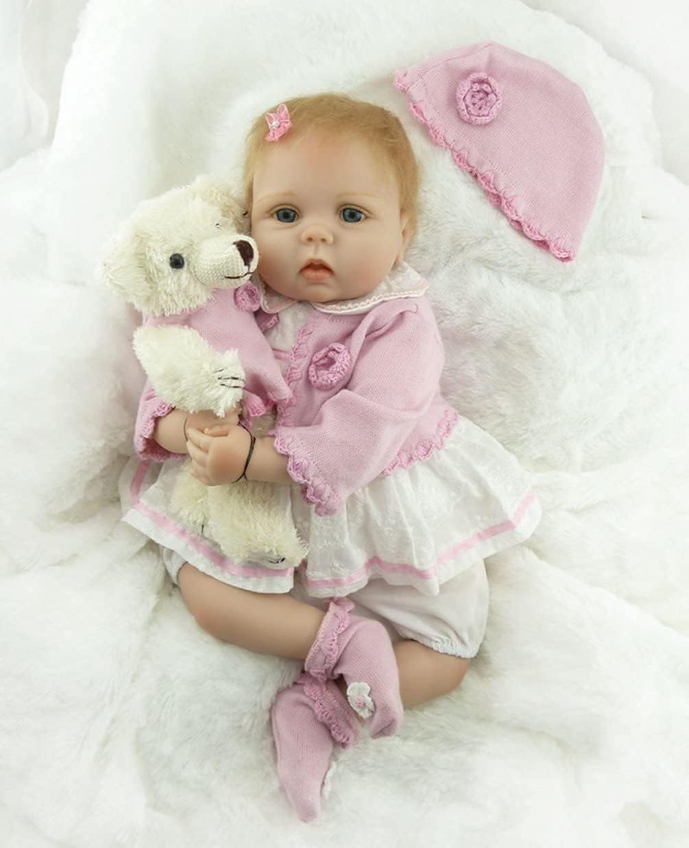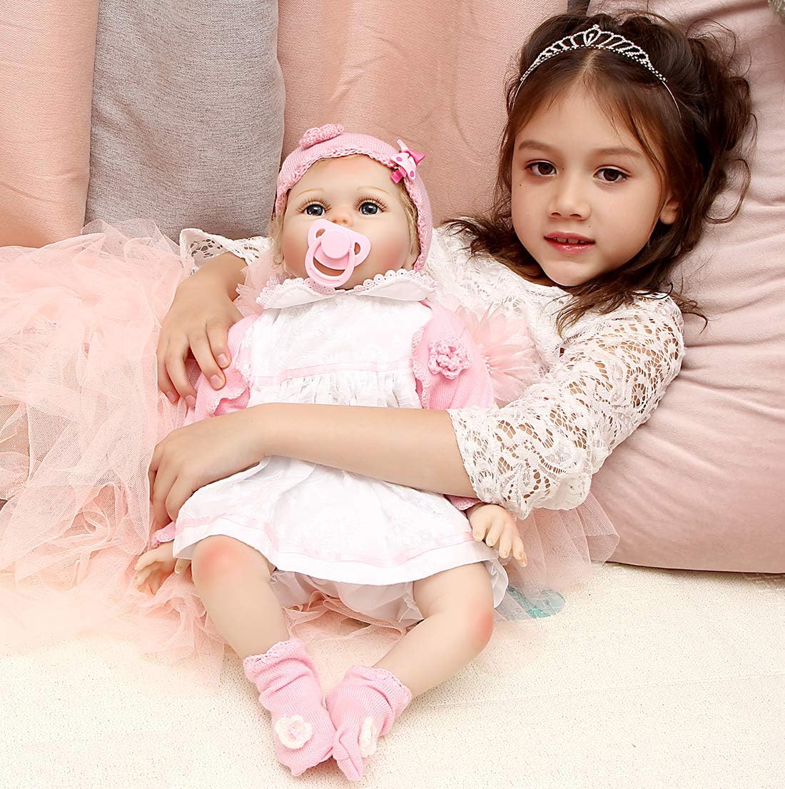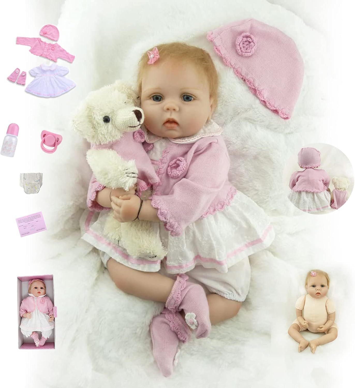 Bebé Reborn Boneca 55cm em Silicone Vinílico com acessórios, feito a mão, recém nascido, olhos abertos