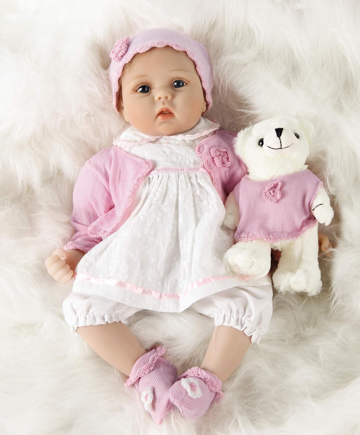 ● Tamanho: aproximadamente 55 cm; Peso: aproximadamente 1,5 kg. O bebé pode adaptar-se às roupas de bebé recém-nascido ● Pacote que inclui: 1 conjunto de roupa, bandolete, íman de chupeta, biberão, manta para bebé, caixa de presente, peluche e certificado de nascimento. ● Material: Cabeça e 3/4 dos membros do bebésão feitos de vinil/silicone. Corpo em tecido com enchimento interno em algodão PP. ●Tem olhos grandes e encantadores, os olhos são feitos com acrílico de alta qualidade. Os olhos não piscam ou fecham. Cabelo: implantação manual, pode ser lavado e penteado, recomendado uso pente de cabeleireiro. ● As bonecas de bebê Reborn atendem aos requisitos de segurança da SAFE ASTM F963 e EN71 para crianças a partir de 3 anos. Receba em até 3 dias uteis após a compra.