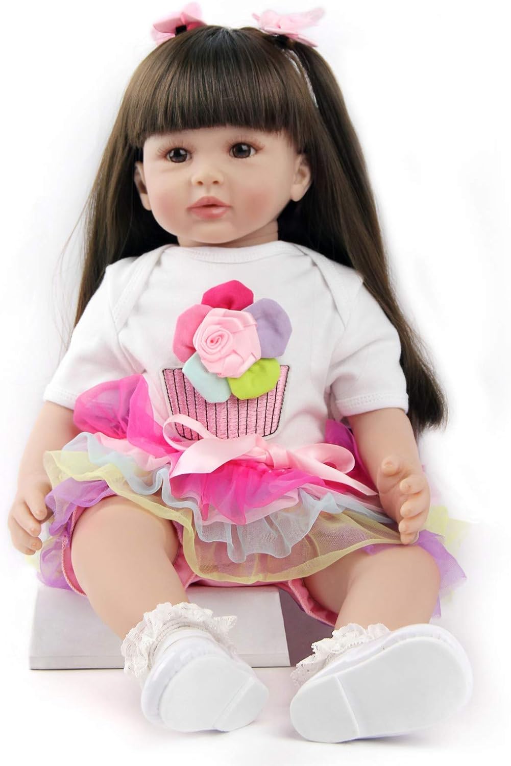 ❤ Tamanho realista entre 50 e 55cm, pesa cerca de 1,6 kg (3,3 libras). A boneca é feita à mão, poderá haverá algum erro no tamanho e peso. O bebé pode adaptar-se às roupas de bebé de tamanho recém-nascido. A chupeta é magnética. ❤ Material: a cabeça, 3/4 braços e 3/4 pernas são feitas de materiais de vinil de silicone macio, corpo de algodão com preenchimento interno de algodão PP. Os membros são móveis, a boneca pode sentar-se e deitar-se facilmente, mas não consegue ficar de pé e falar. A boneca não pode entrar na água ❤ Cabelo em peruca macia, fácil de cuidar, os olhos de acrílico de alta qualidade, não piscam/fecham. ❤ Acompanha: manta, biberão, chupeta magnética, certificado de nascimento e a roupa completa. ❤ Segurança e qualidade: As bonecas atendem aos requisitos de segurança da ASTM F963 e EN71 para crianças acima de 3 anos. Receba em até 3 dias uteis após a compra.