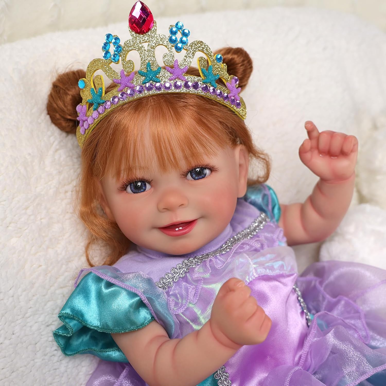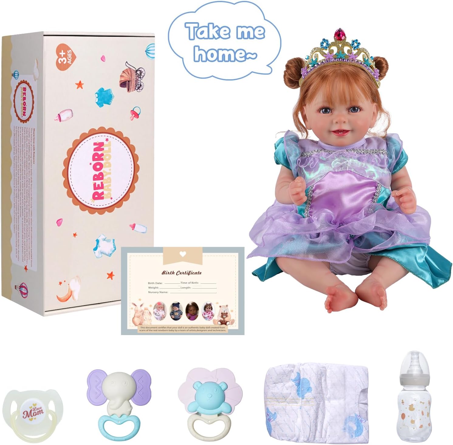 Boneca Bebé Reborn Cabelos vermelhos, 50cm em Silicone Vinílico e tecido, detalhes realistas, com acessórios