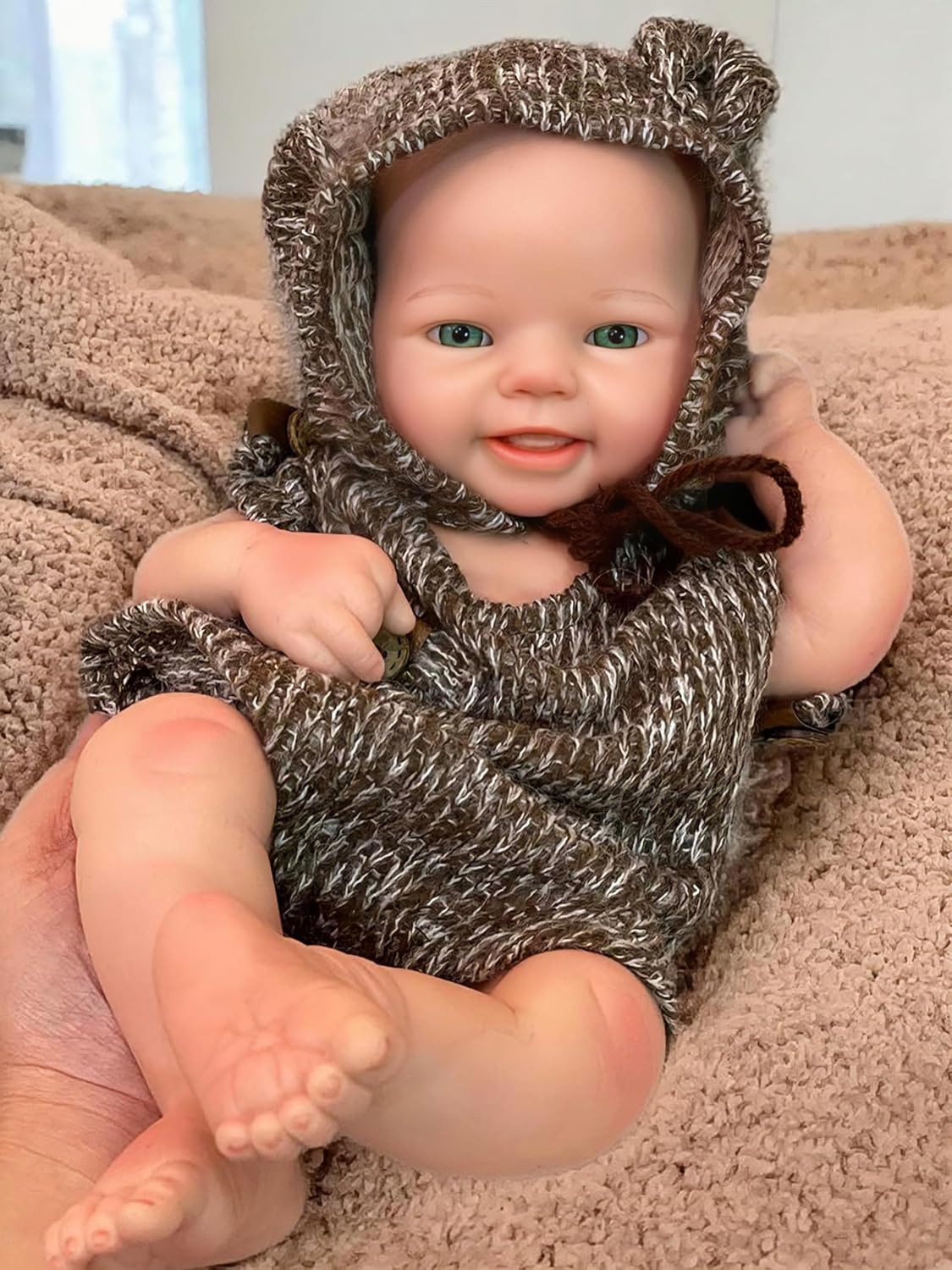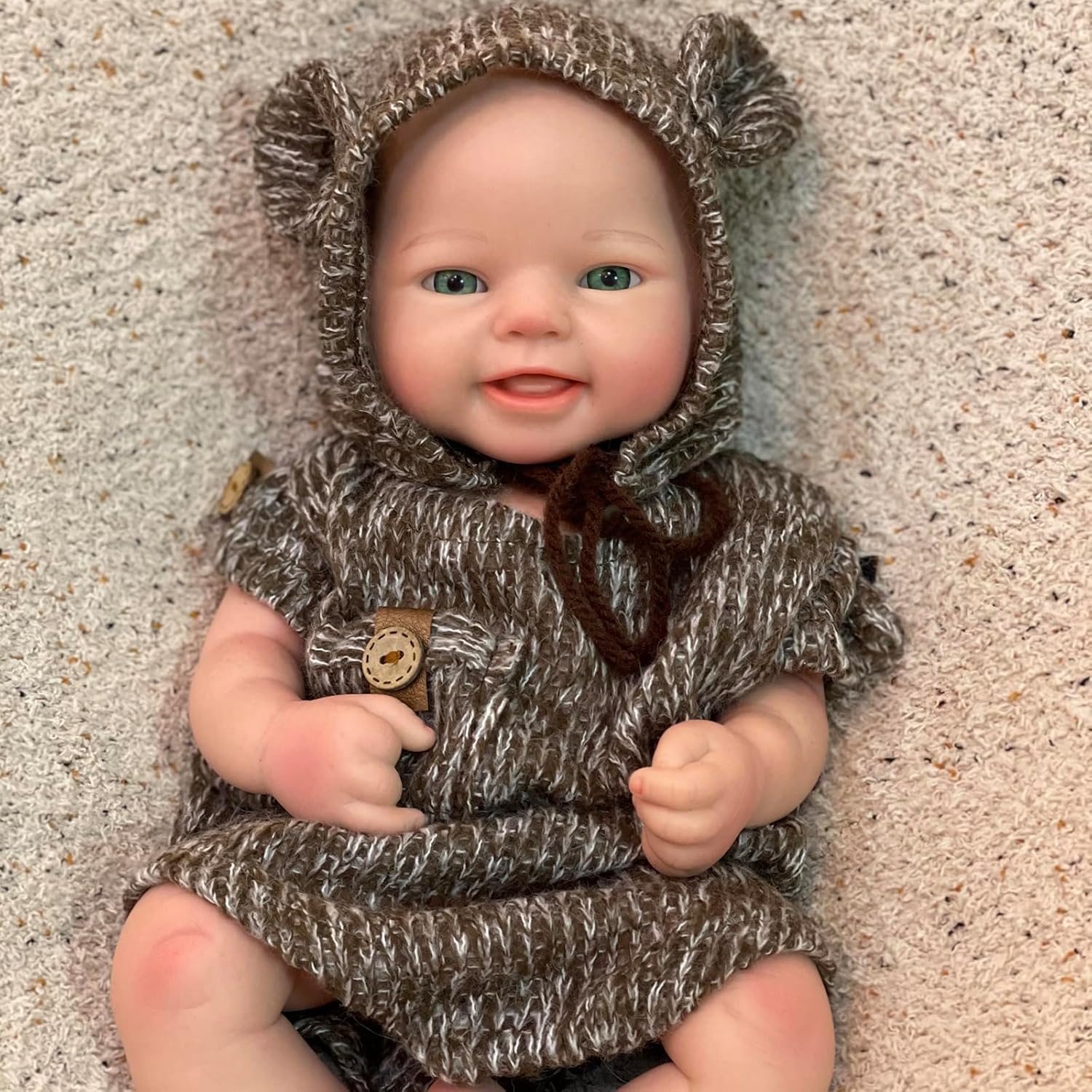 Boneca Bebé Reborn João, abre a boca, menino 38cm 100% em Silicone de Platina com acessórios, recém nascido, olhos abertos