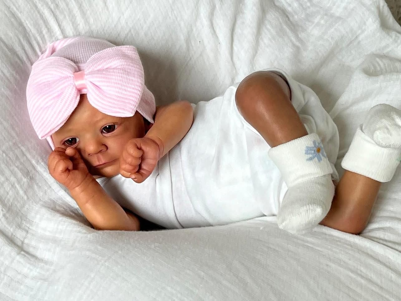✺ Linda bebé recém-nascida com detalhes feitos à mão. Olhos sempre abertos.