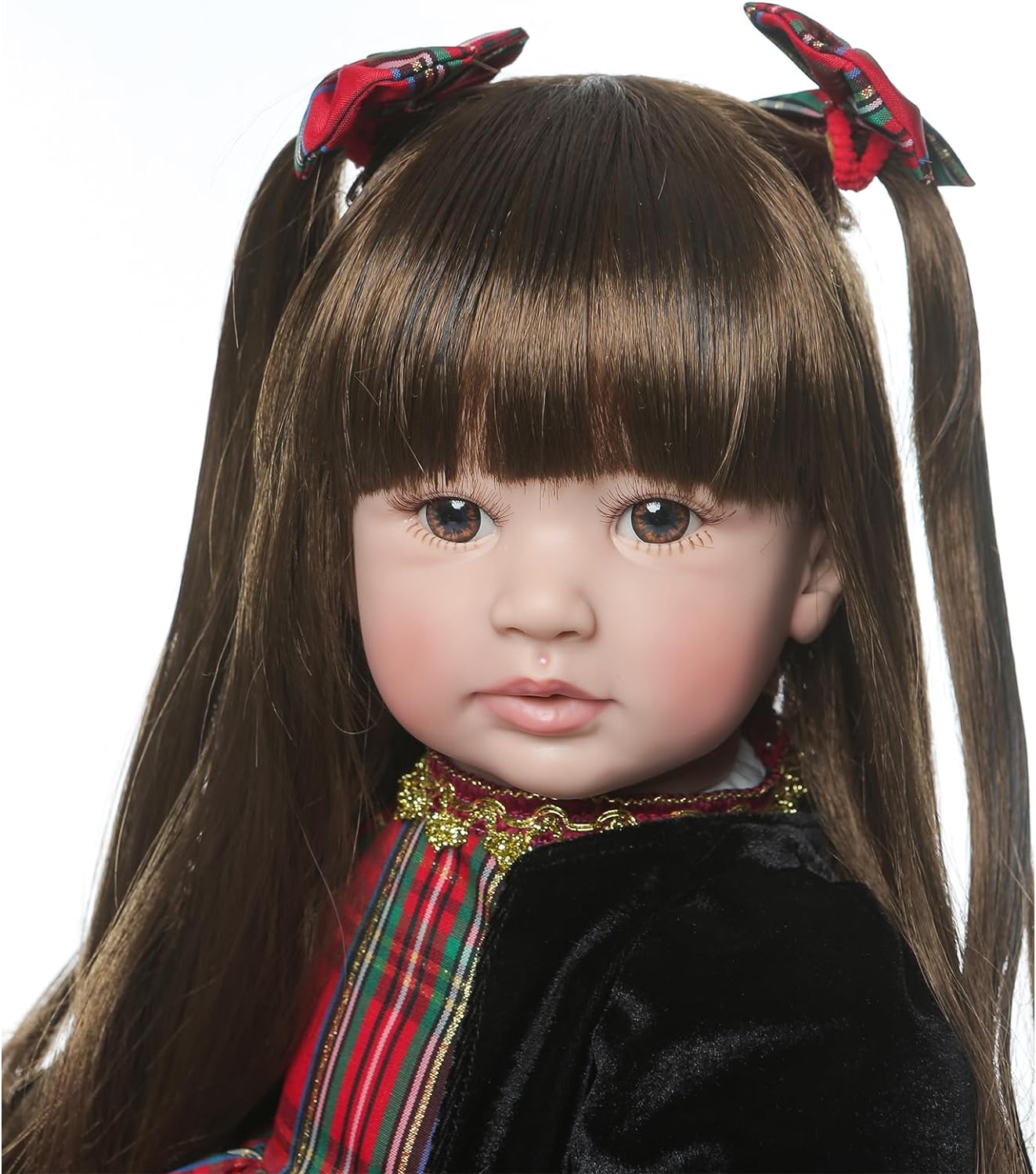 ❤ Cabelo em peruca macia, fácil de cuidar, os olhos de acrílico de alta qualidade, não piscam/fecham.