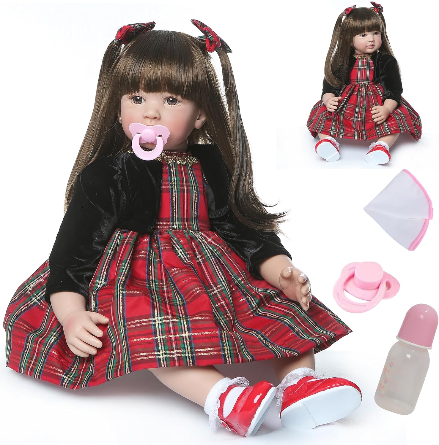❤ Tamanho realista entre 50 e 60cm, pesa cerca de 1,6 kg (3,3 libras). A boneca é feita à mão, poderá haverá algum erro no tamanho e peso. O bebé pode adaptar-se às roupas de bebé de tamanho recém-nascido. A chupeta é magnética.