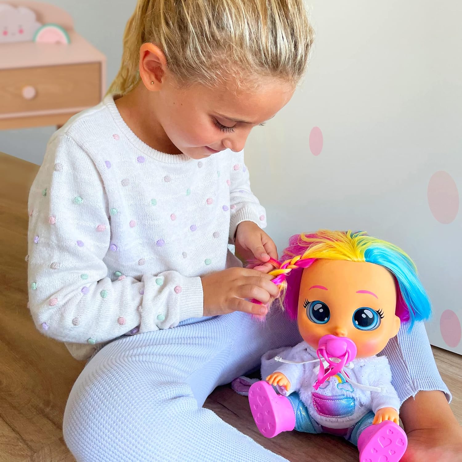 Home Bonecas Boneca Cry Babies Dreamy, Dressy Dreamy Unicornio, bebé chorão unicórnio Boneca Cry Babies Dreamy, Dressy Dreamy Unicornio, bebé chorão unicórnio SKU: 3196 Prenda - Embrulho XL - 6,00 € 49,90 € 59,90 € Desconto de %. Comprar Contactar Adicionar à wishlist Cry Babies Dressy Dreamy: vista a Dreamy com seu lindo conjunto de unicórnio, incluindo um par de sapatos - penteia seus cabelos macios e brilhantes. Sem chupeta → Chora lágrimas reais e faz mais de 10 sons de choroCom chupeta → Para de chorar Pode acomodá-la nos braços para acalmá-la. Tamanho da boneca: 30cm. Faz uso de pilhas AA. Receba em até 3 dias úteis após a compra! Marca Cry Babyes Tags CryBabies Características Partilhar