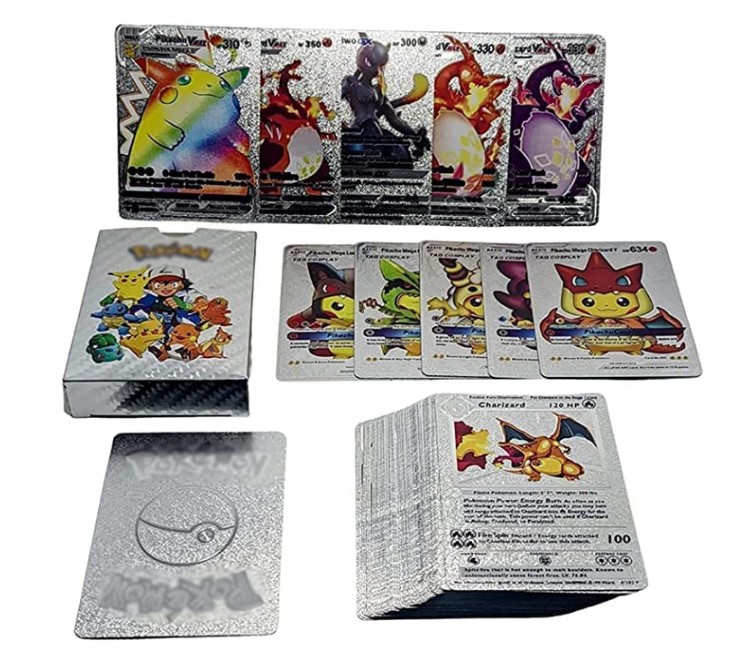 Cartas Pokemon, 55 cartas Pokemon Prateadas, cartas Pok Prateadas