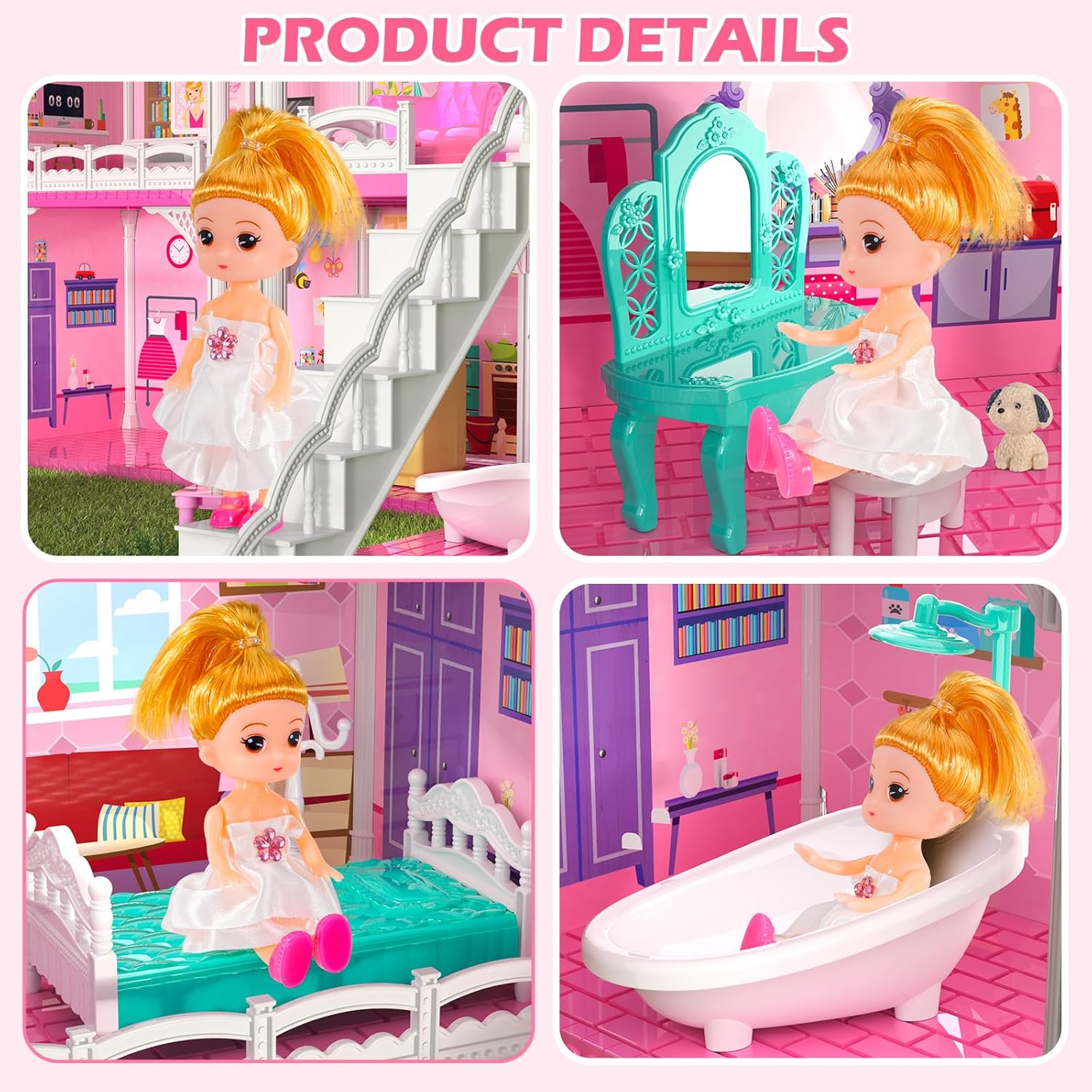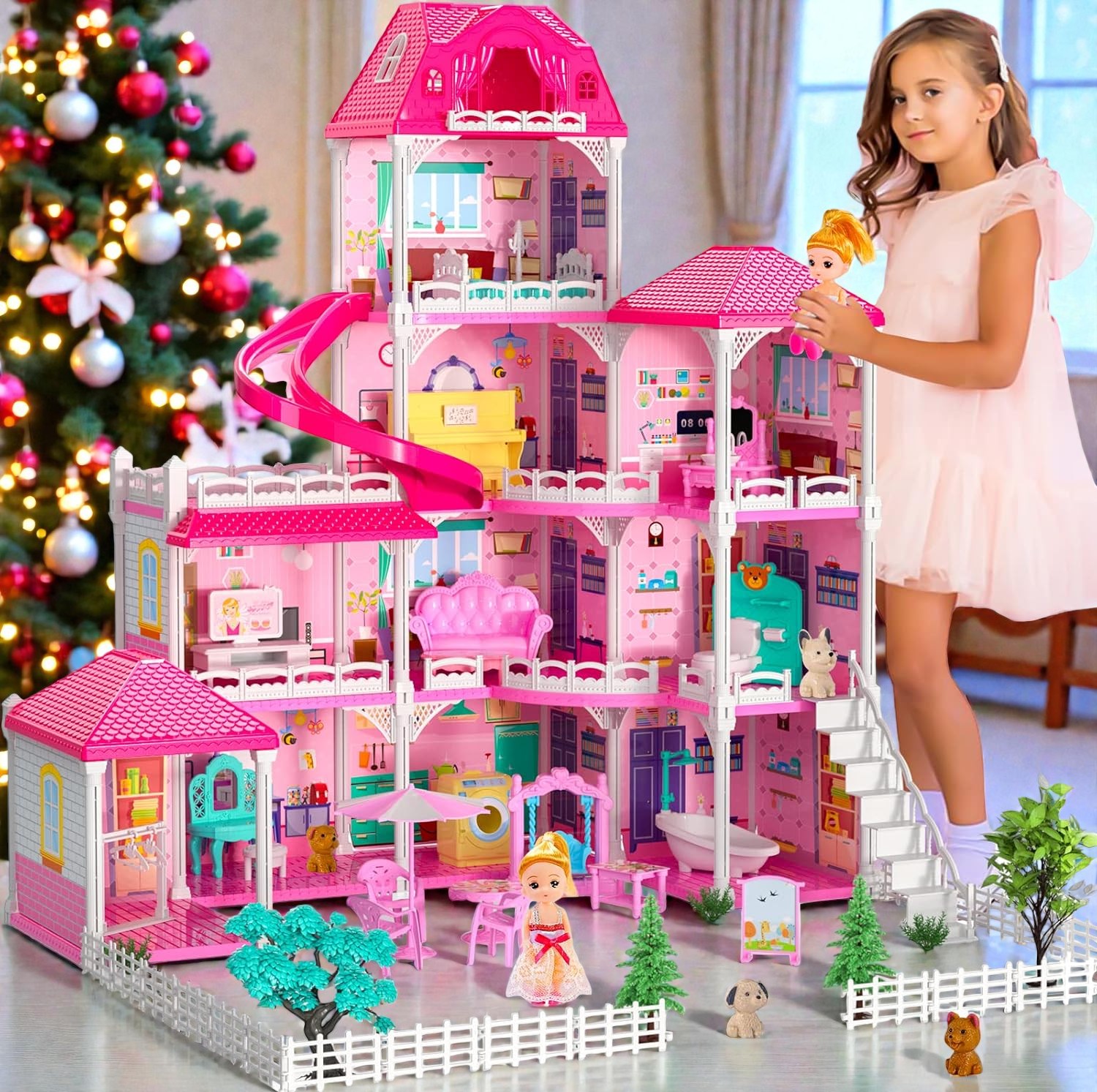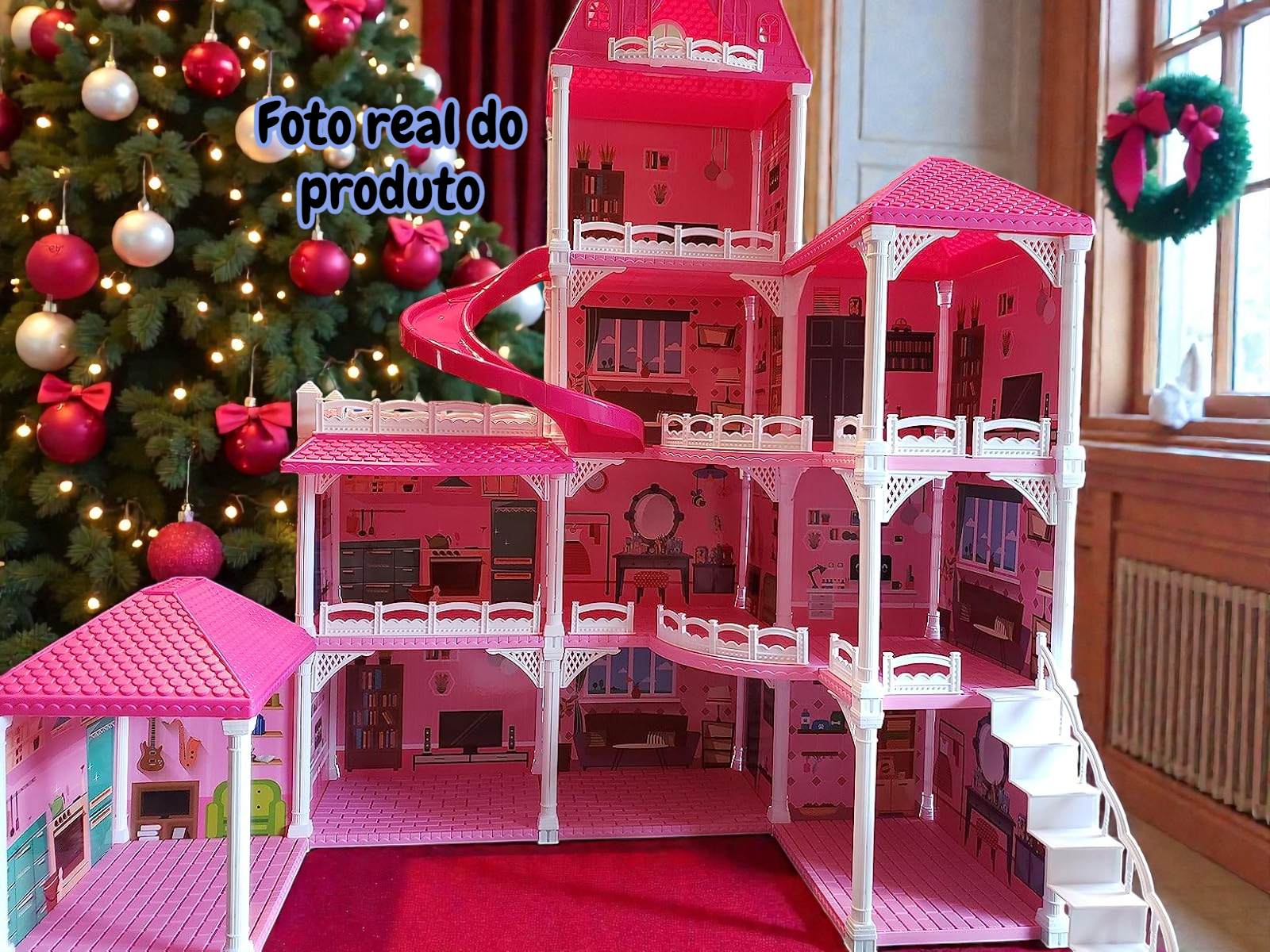 Casa de bonecas tamanho XL, 4 andares, 10 quartos, bonecas, animais e muitos acessórios