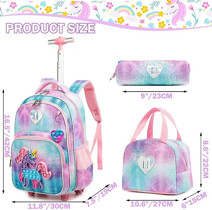 Conjunto 3 em 1: o conjunto de mochila vem com mochila trolley + lancheira + estojo para lápis e um Pop iT de prenda. Ideal para alunos do ensino básico e secundário. Ajude os seus filhos a reduzir o peso e a contribuir para o crescimento saudável das crianças.