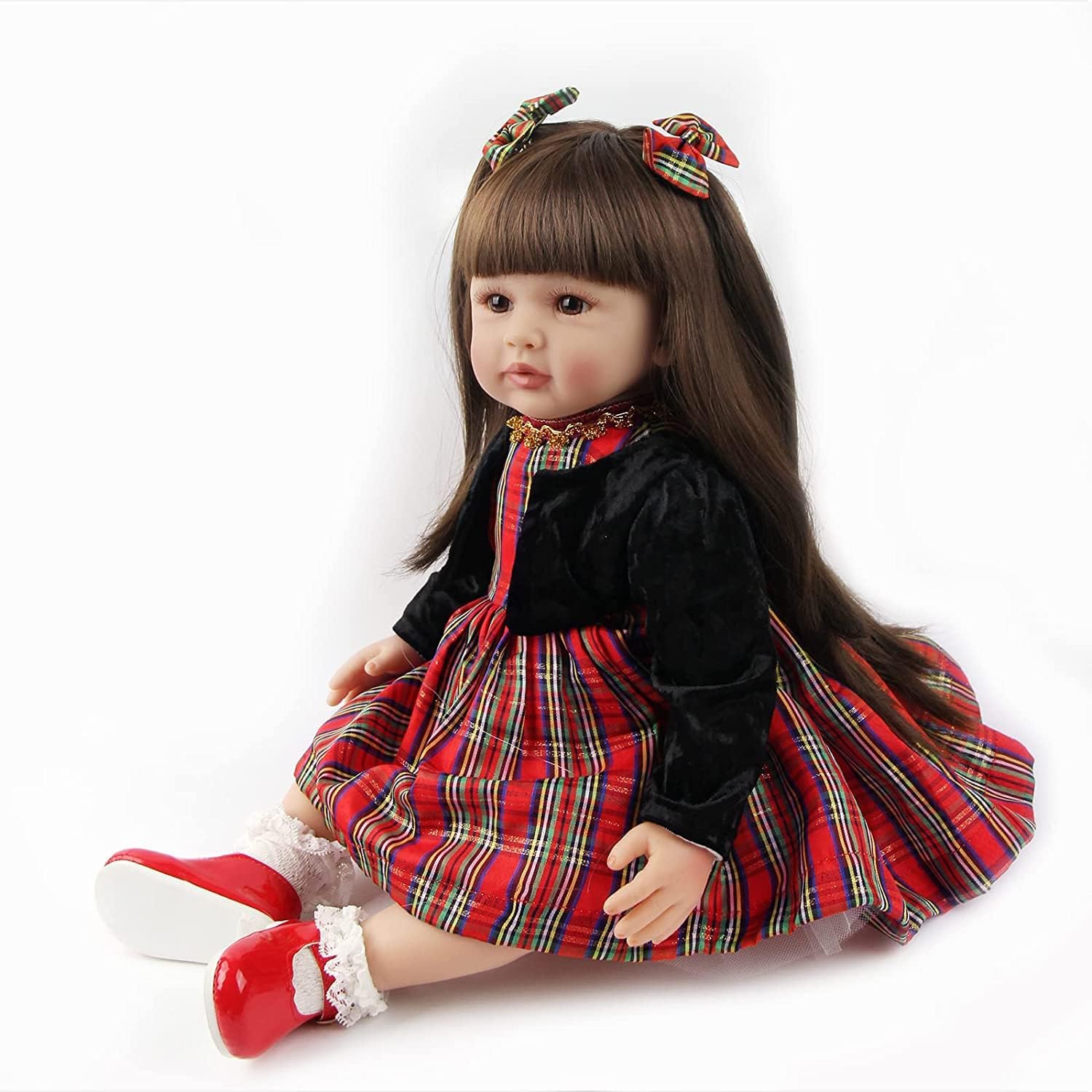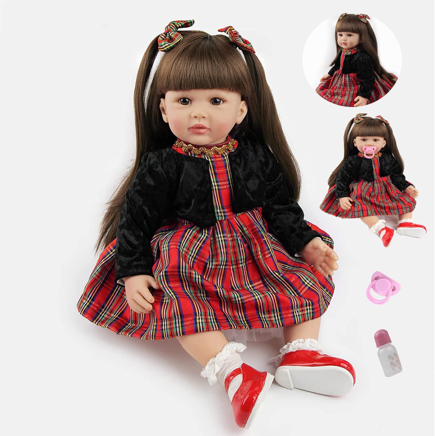 Boneca Bebé Reborn de Natal, menina, 60cm em Silicone Vinílico com acessórios, recém nascido