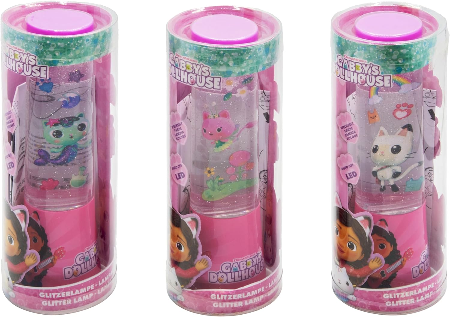 Candeeiro LED com Glitter Gabby's Dollhouse. Embalagem de tubo 4,5 x 4,5 x 15 cm