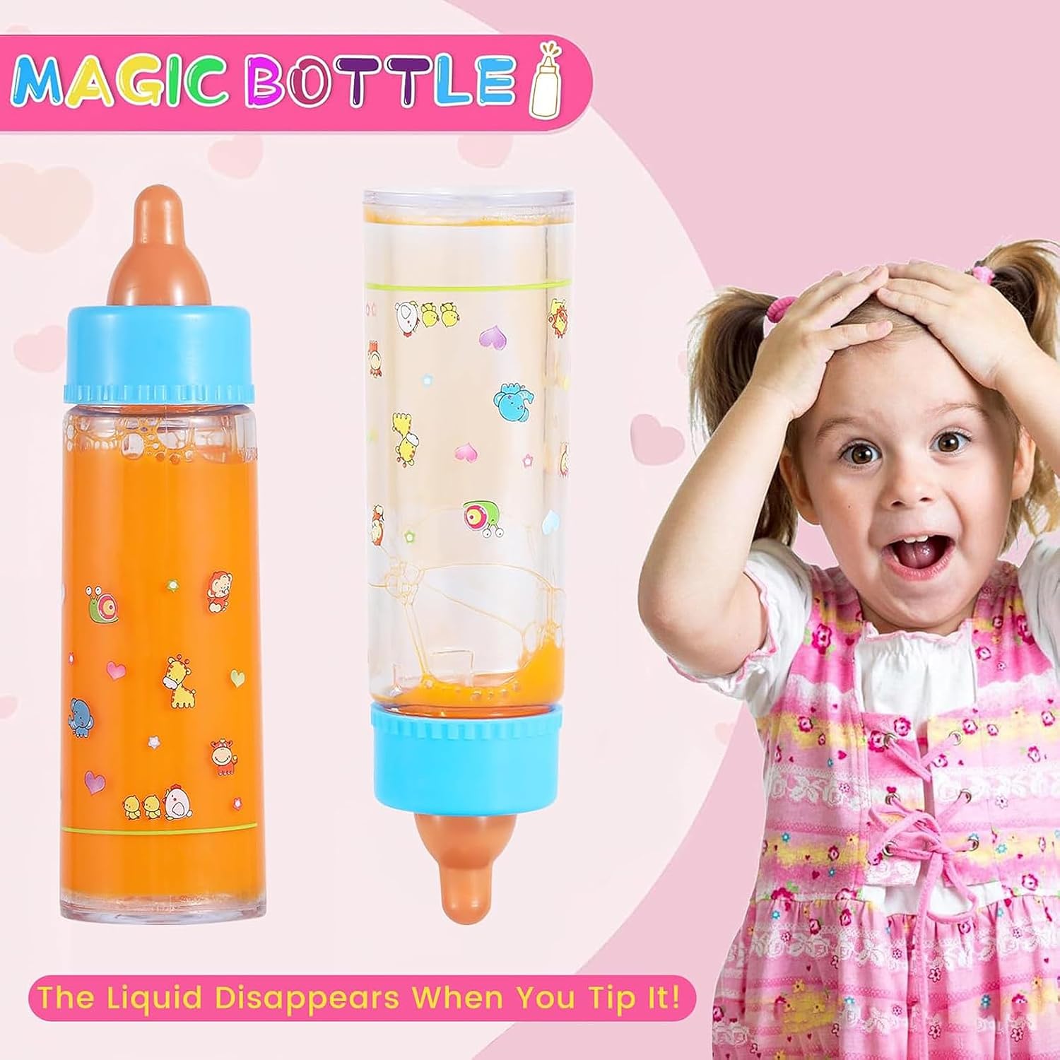 As crianças podem brincar indefinidamente o biberão "mágico",  o leite/sumo desaparece quando colocadod de cabeça para baixo, como se o bebé realmente estivesse a beber.