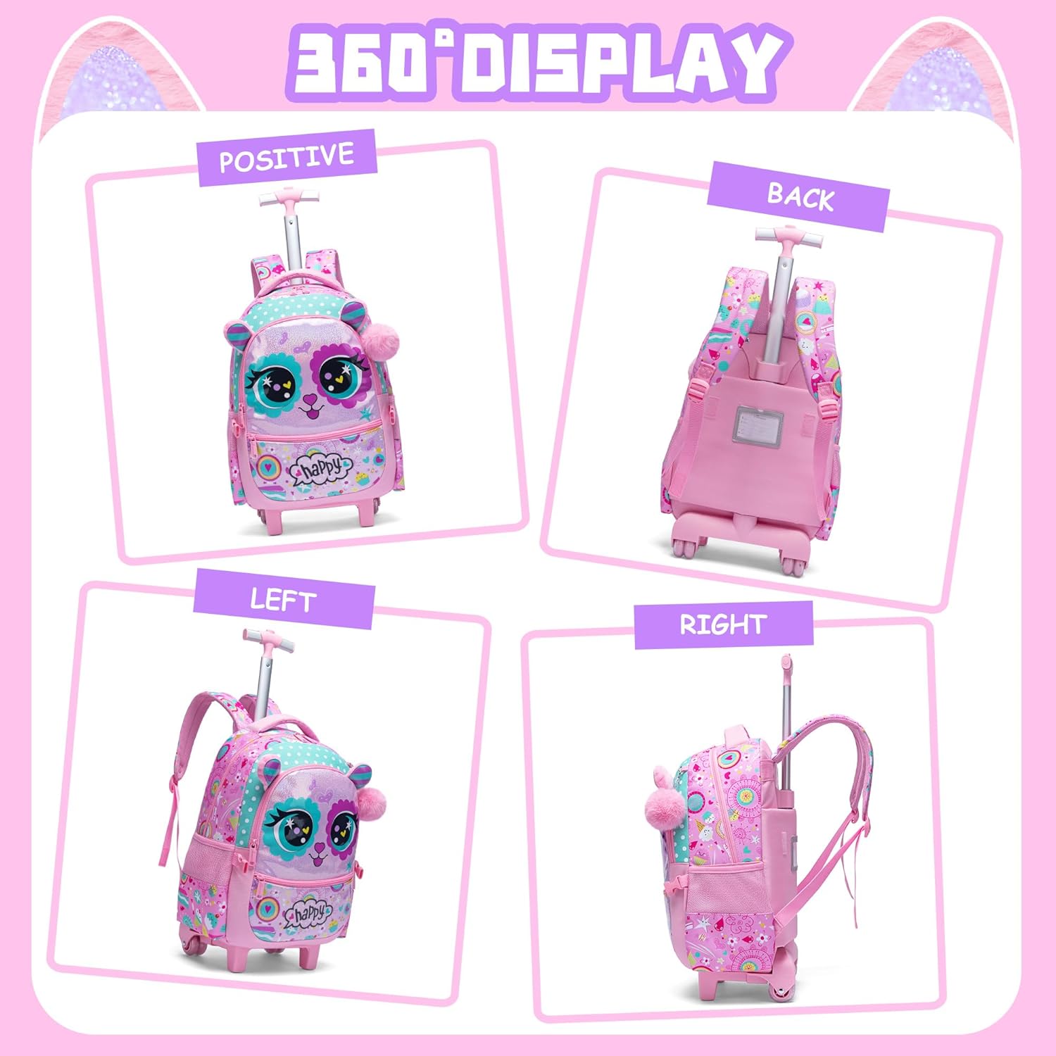 Design alegre, espaçoso sendo possível usar na escola, férias, passeios e viagens. Rodas de baixo ruído e que facilitam o transporte. Haste em alumínio, leve e de alta resistência com 2 configurações de comprimento.