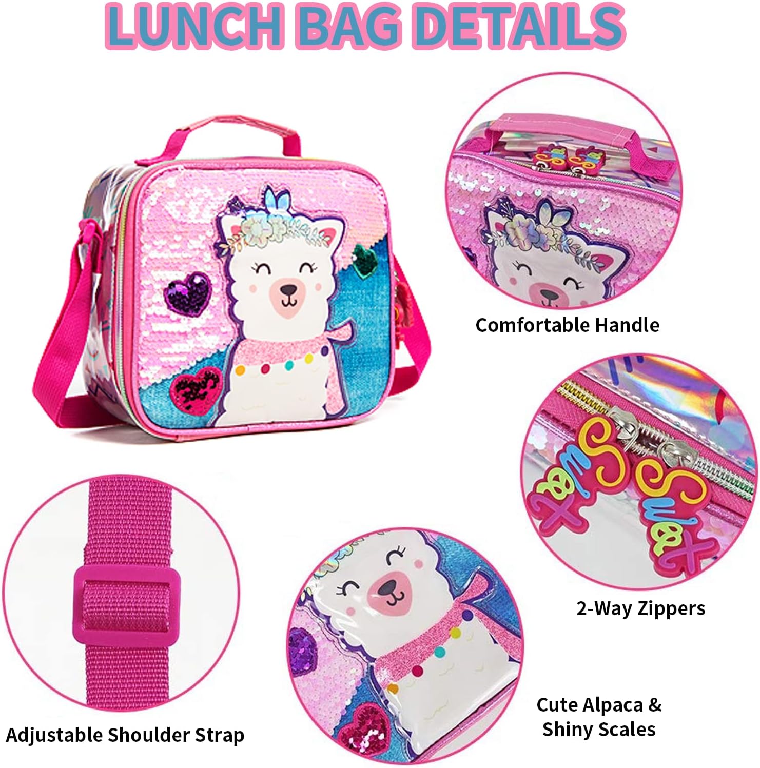 Kit Escolar para meninas Mochila + Lancheira + Porta Lápis: tamanho grande, com trolley, ovelha