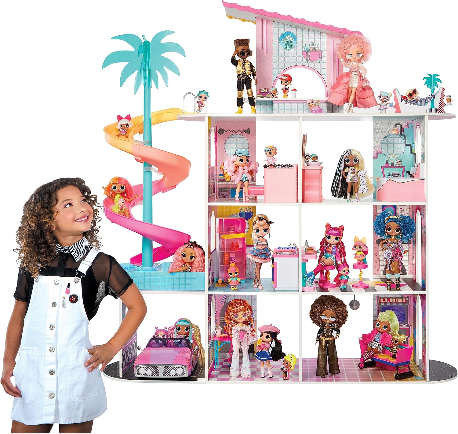 A nova casa de surpresas LOL Surprise OMG tem 10 belos quartos em andares diferentes, incluindo casa de banho, cozinha, piscina, cinema e muito mais. Adequado para bonecas LOL Surprise e bonecas OGM. A casa tem muitos recursos como luzes interativas, uma lareira, um elevador que funciona com os seus LOL, um controlador thru com garagem e muito mais (pilhas incluídas e substituíveis). Muita diversão - a casa das surpresas inclui 10 quartos que giram para revelar características adicionais, móveis que podem ser transformados e muitos acessórios para brincar junto com as suas bonecas LOL (não incluídas). Receba em até 8 dias uteis.