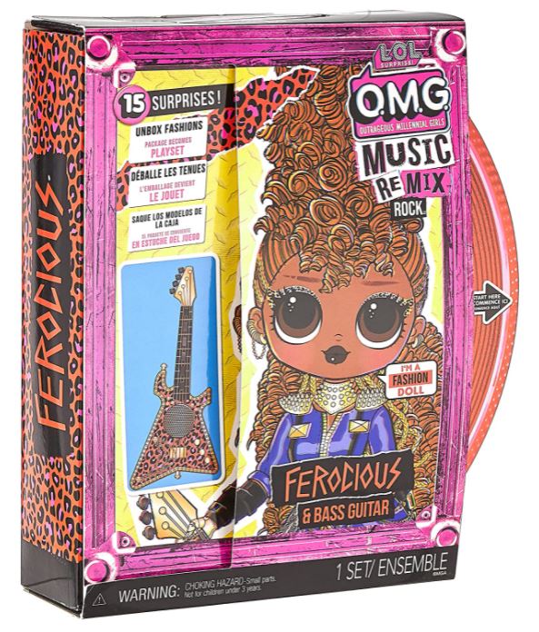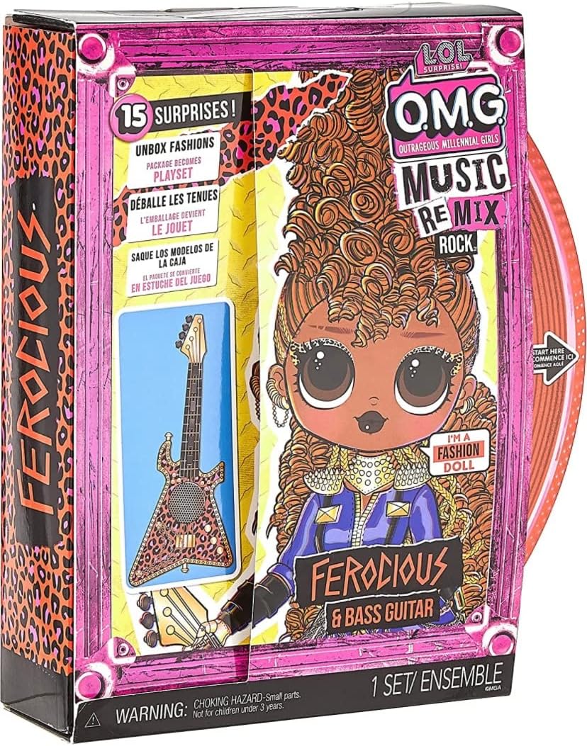 Lol Surprise omg Remix Rock Ferocious Fashion Doll com 15 surpresas, incluindo baixo, roupa, sapatos, escova de cabelo, boneca, revista Lyric e pacote de toca-discos - para meninas a partir de 4 anos