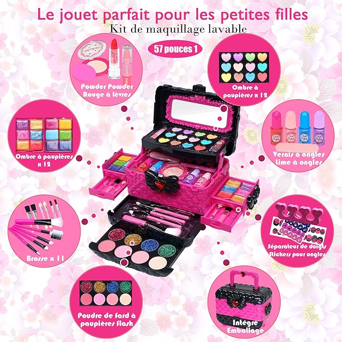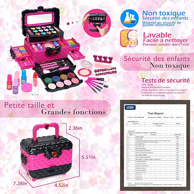 Maleta maquilhagem infantil com 57 peças, não tóxico, sem conservantes, lavável