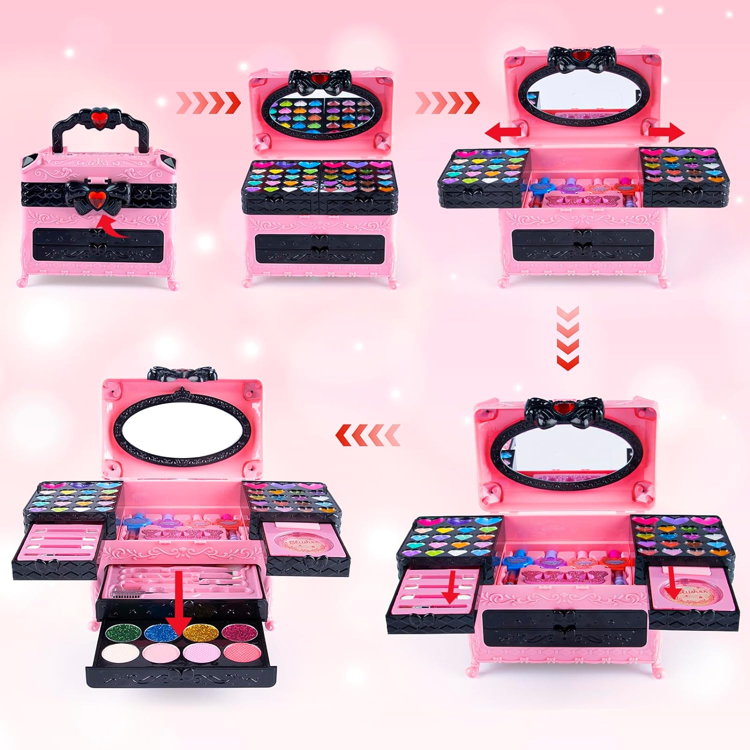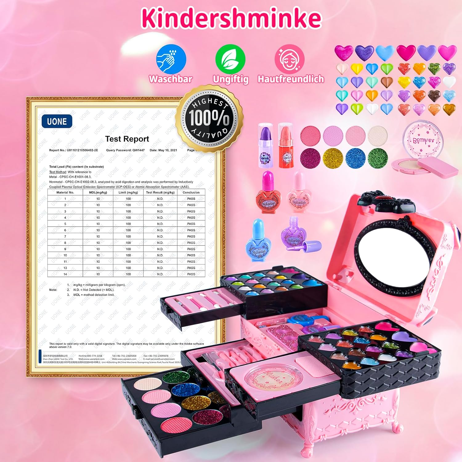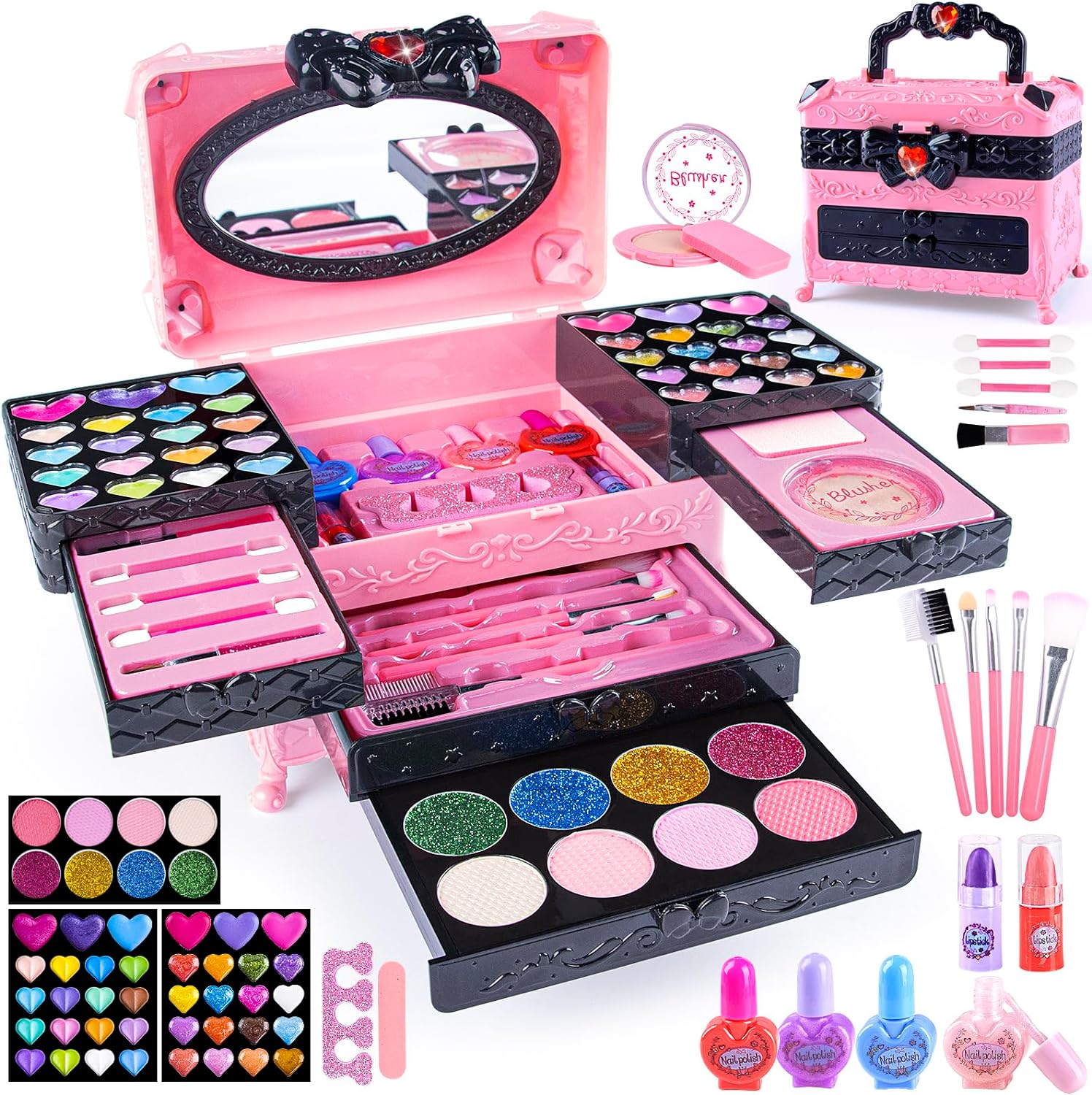 Maleta maquilhagem infantil com 66 peças, não tóxico, sem conservantes