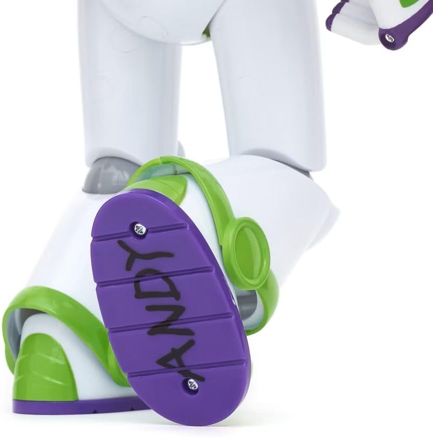 Buzz está pronto para uma aventura intergaláctica: suas asas se abrem para o modo de voo e seu capacete abre e fecha. Ele tem luzes que funcionam e diz 15 frases diferentes.