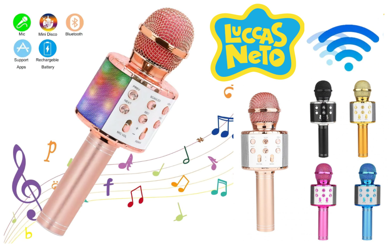 Luccas Microfone Karaoke sem fios, Bluetooth, portátil, com luzes led e gravador