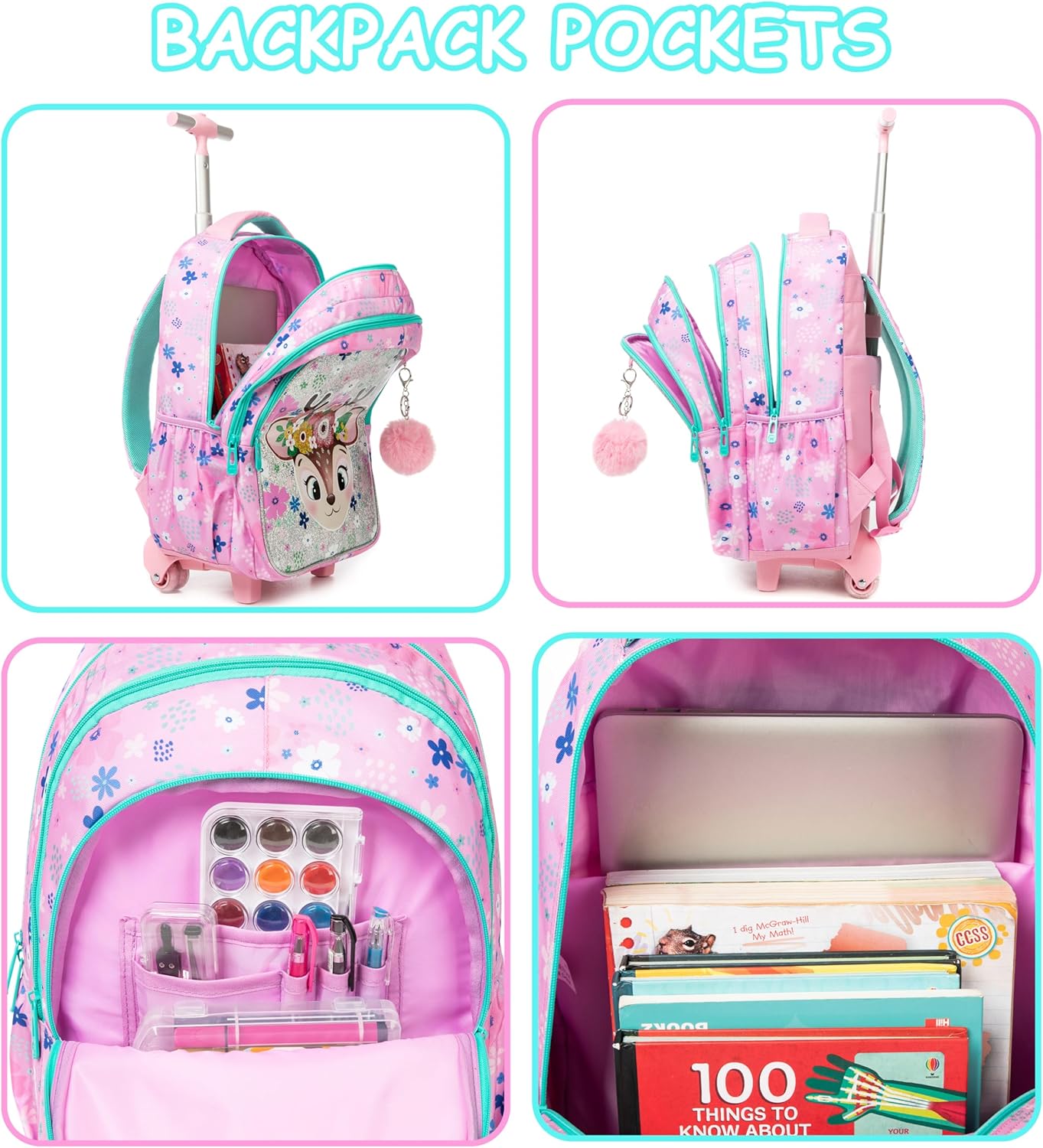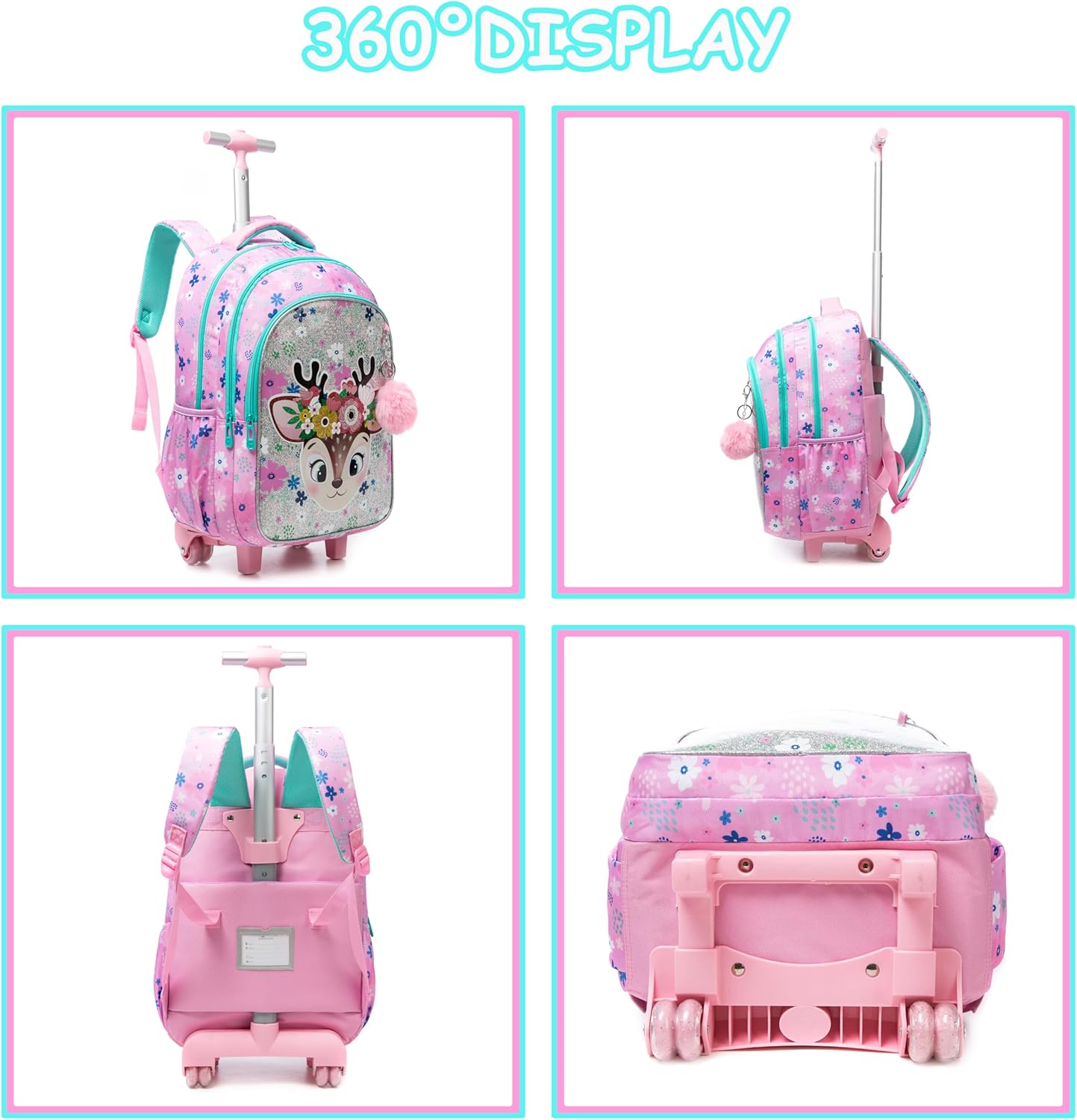 Design alegre, espaçoso, seus compartimentos permitem um bom armazenamento, sendo possível usar na escola, férias, passeios e viagens. Rodas de baixo ruído e que facilitam o transporte. Haste em alumínio, leve e de alta resistência com 2 configurações de comprimento.