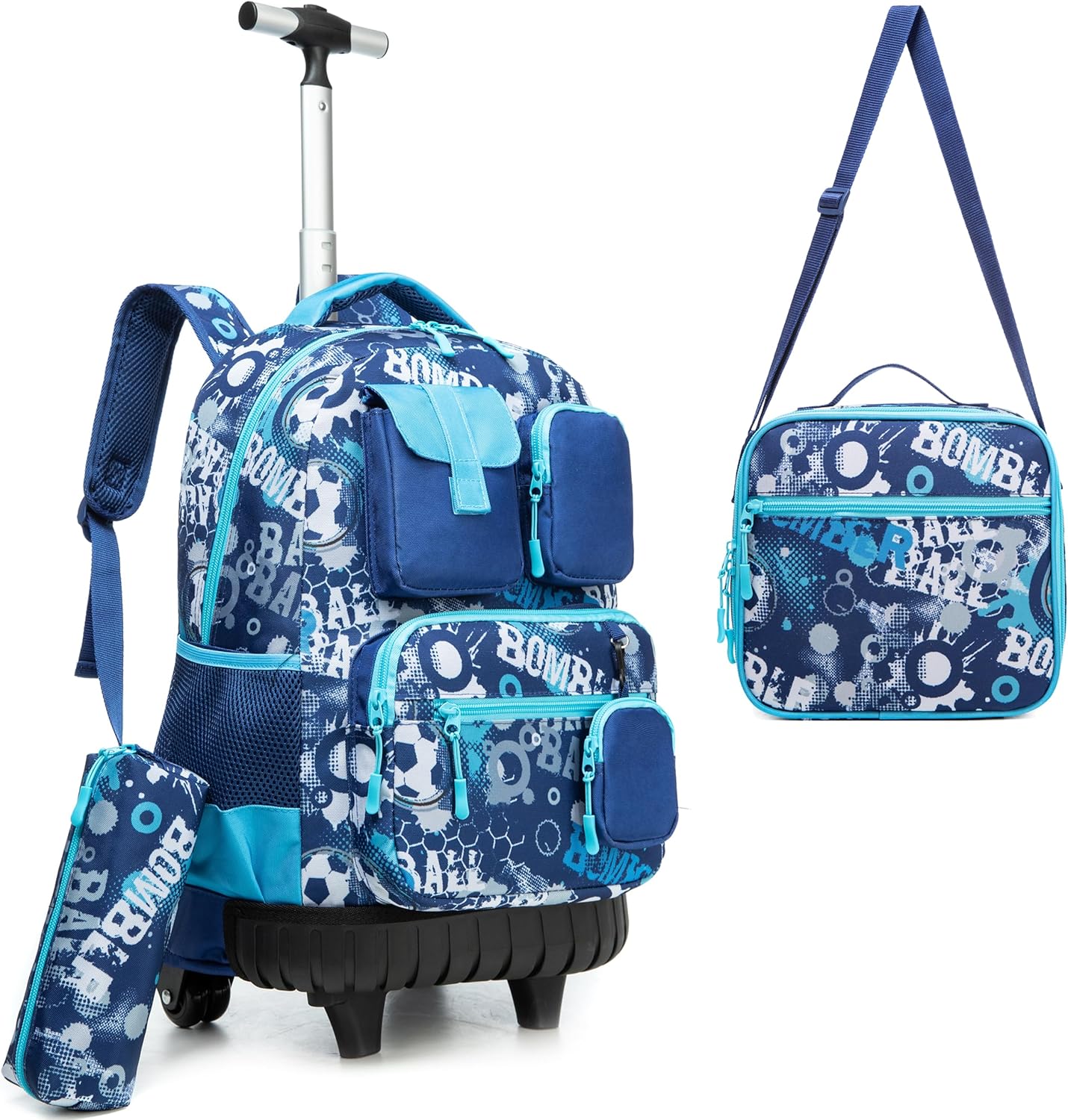 Kit Escolar Tema Futebol: Mochila com Trolley + Lancheira + Porta Lápis: tamanho grande, receba em 3 dias