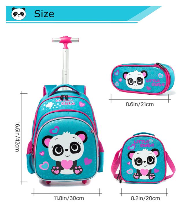 Kit Escolar Panda Mochila com Trolley + Lancheira + Porta Lápis: tamanho grande