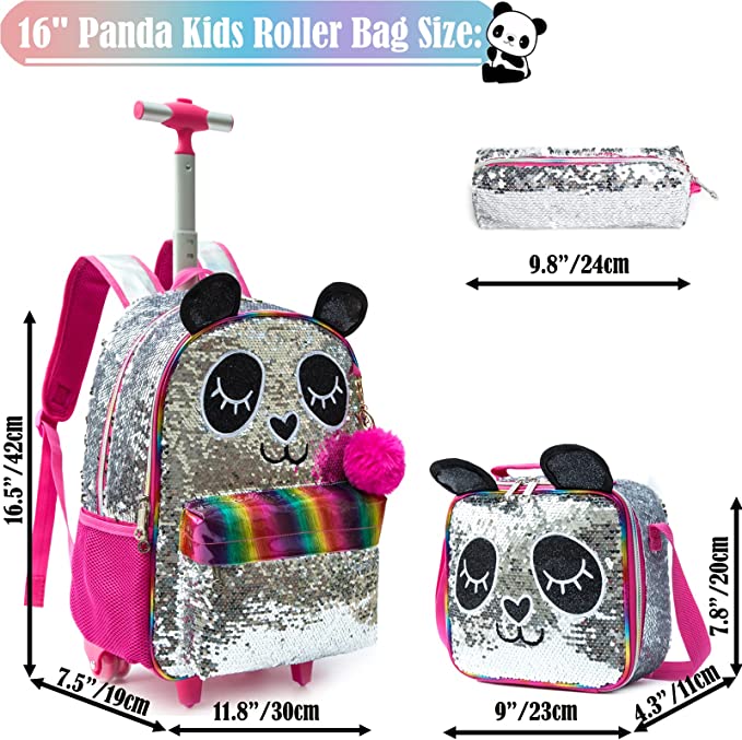 Kit Escolar Panda, Mochila Panda com Trolley + Lancheira + Porta Lápis: tamanho grande