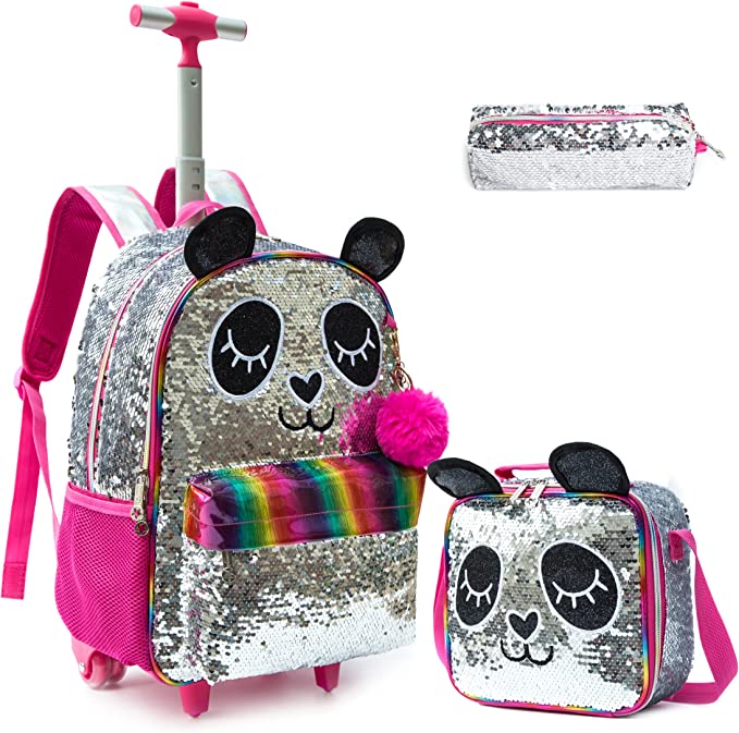 Mochila infantil de grande capacidade: a mochila com rodas para crianças contém 1 bolso principal grande, 2 bolsos frontais com fecho de correr, 2 bolsos de armazenamento de malha.