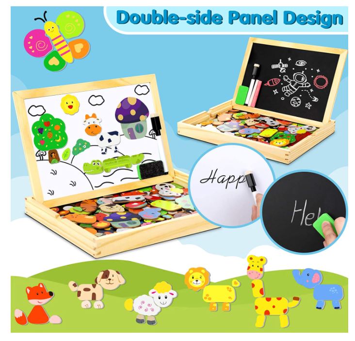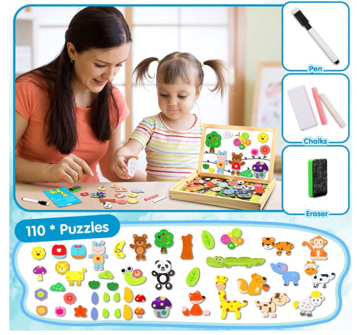 Acessórios abundantes e fáceis de transportar - Inclui 110 quebra-cabeças, 2 gizes, 1 lápis de cor, 1 borracha e 1 guia de quebra-cabeças. Todas as peças são embaladas numa caixa de madeira, fácil de transportar e armazenar. É o melhor brinquedo para as crianças brincarem em carros, aviões, interiores e exteriores. Envio em até 4 dias úteis após a compra.