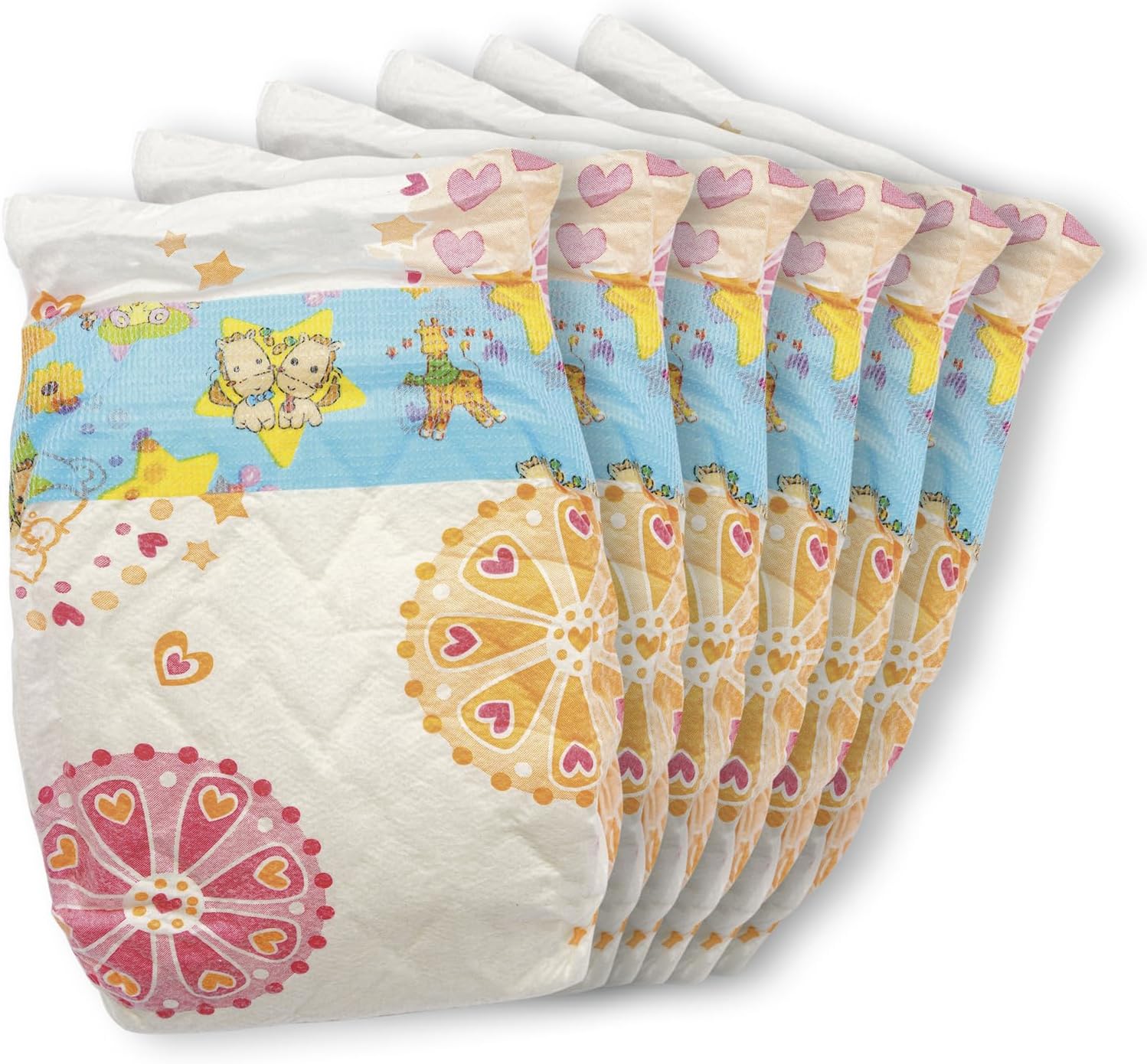 Inclui 6 fraldas para trocar a sua boneca Reborn quando ela “fazer xixi” ou “cocô” (bonecas vendidas separadamente). Cimpatívelcom bonecas de 30 a 50cm.
