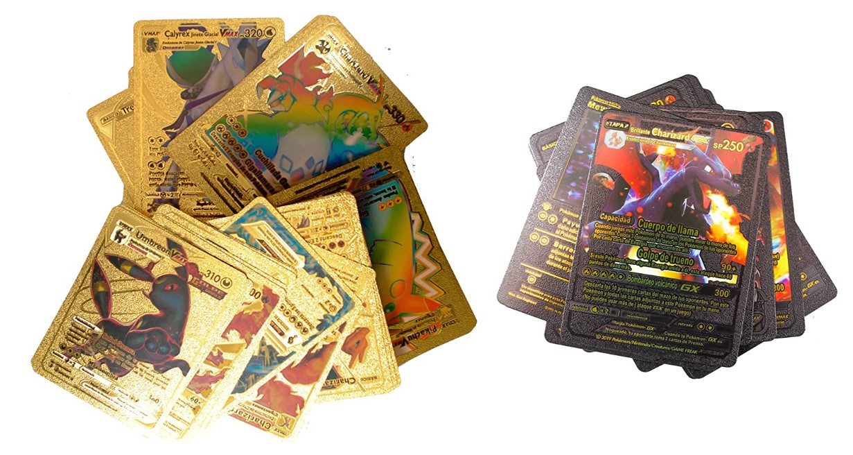 Cartas Pokemon, 110 cartas Pokemon: 55 douradas, 55 pretas, cartas Pokemon PVC