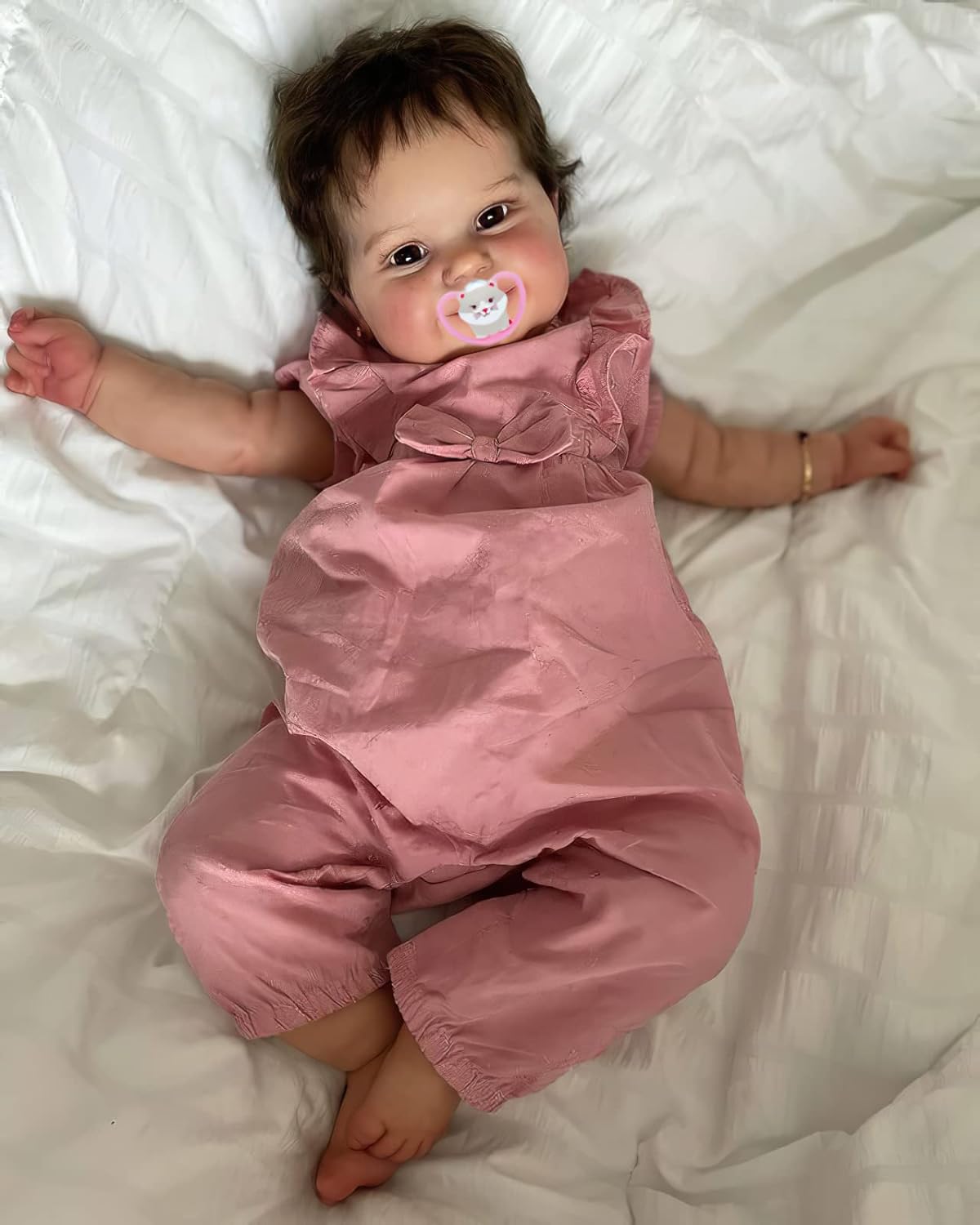 ❤ Tamanho da boneca: 50cm, Peso: aprox 1.200kg ❤ Cabeça: material de vinil de silicone; Corpo em tecido; os braços e as pernas são feitos de vinil de silicone completo. ❤ Cabelo de fibra enraizado à mão, recomendado usar pente de aço para cuidar. ❤ Olhos em acrílicos de gama alta; pestanas coladas à mão. A boneca pode sentar-se e deitar-se, mas não consegue ficar em pé - não fala e os olhos não piscam/fecham. ❤ O pacote inclui: boneca, roupa completa, biberão, chupeta magnetica e certificado de nascimeno. ❤ Receba em até 4 dias uteis após a compra.